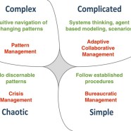 Simple environments are deterministic – there is a clear, simple and obvious link between cause and effect. For example, a ball rolling off a table on earth will drop to the floor. Under these conditions, leaders can learn very quickly by using “sense–categorize–respond”. Sense what is going on (ball fell off the table), categorise what happened (gravity) and then respond (turn the ball into a square so that it cannot roll).